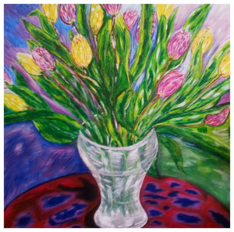 Schilderij "Tulpen in een vaas", 3 D, acryl, 50 x 50.
