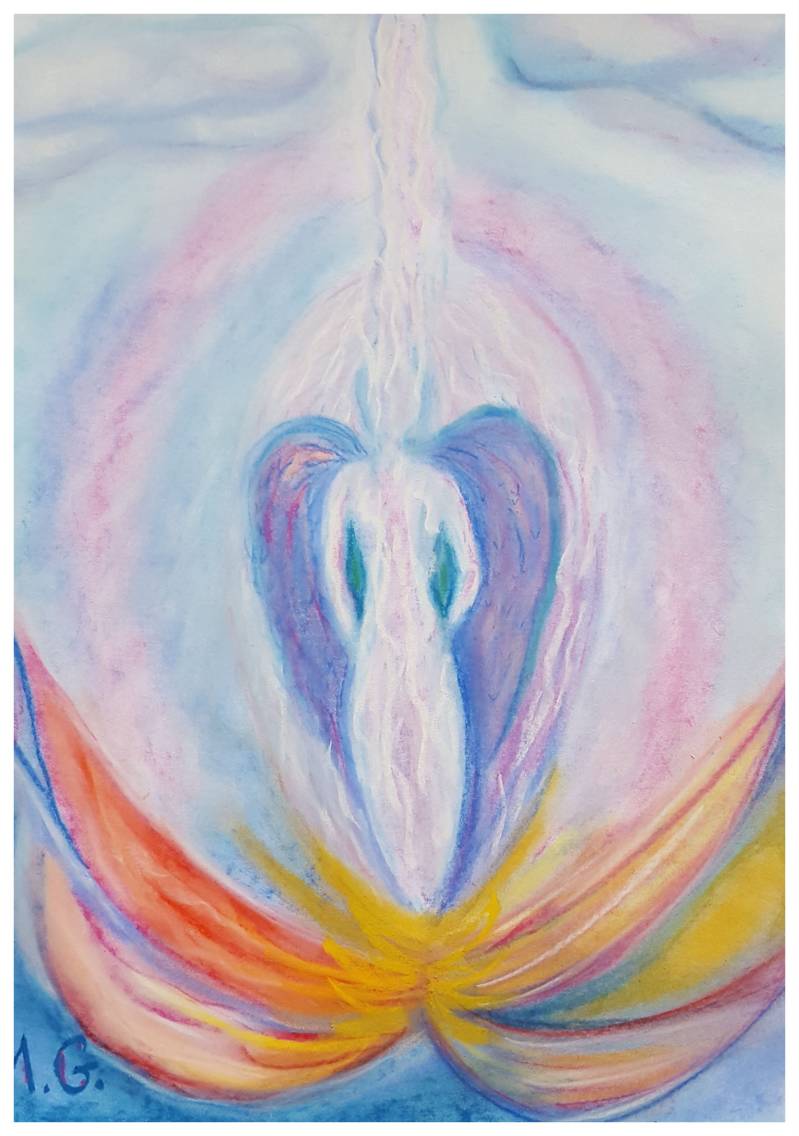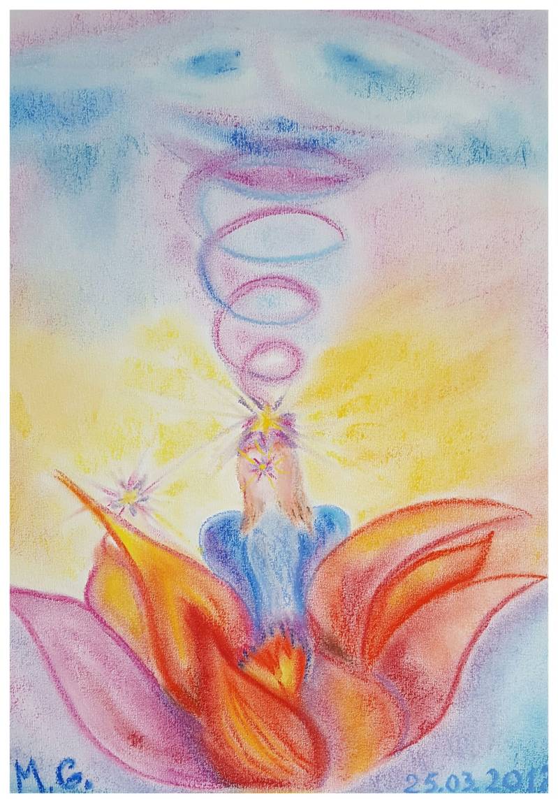 Рисунок на бумаге мелками Рембрандта "Серебряная нить Связь с Богом".